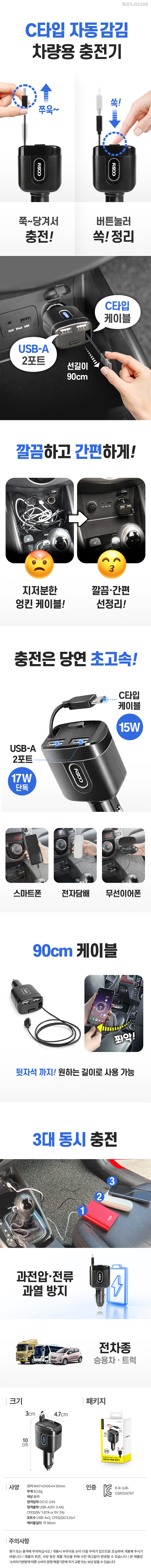 Äڽà ´ÏÄ« CŸÀÔ ÀÚµ¿°¨±è Â÷·®¿ë ÃæÀü±â(QC3.0,2Æ÷Æ®)