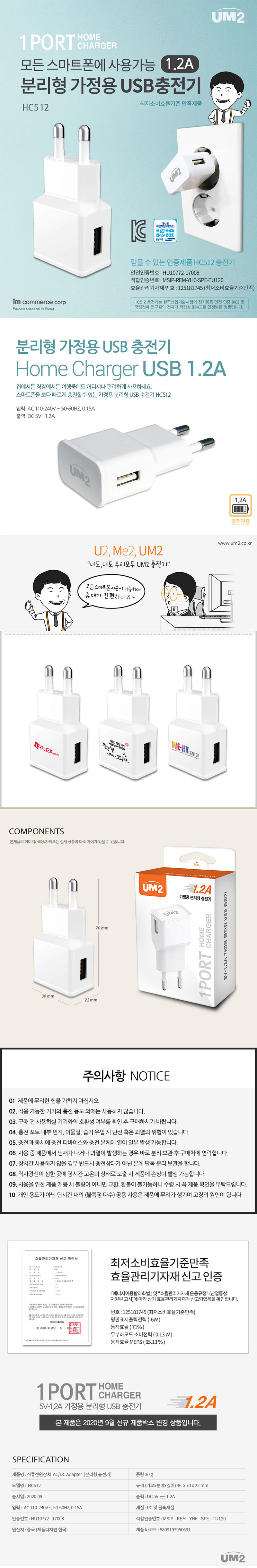 UM2 USBÃæÀü±â HC512(1.2A)