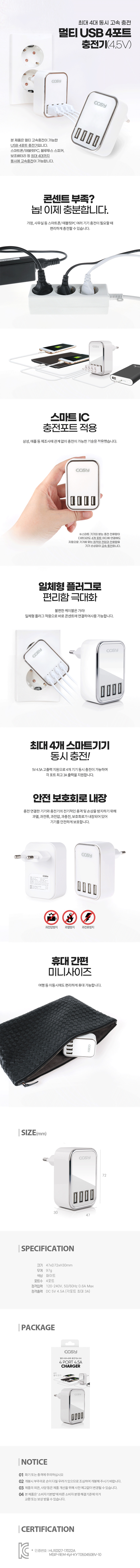 Äڽà ¸ÖƼ USB 4Æ÷Æ® ÃæÀü±â (4.5A)