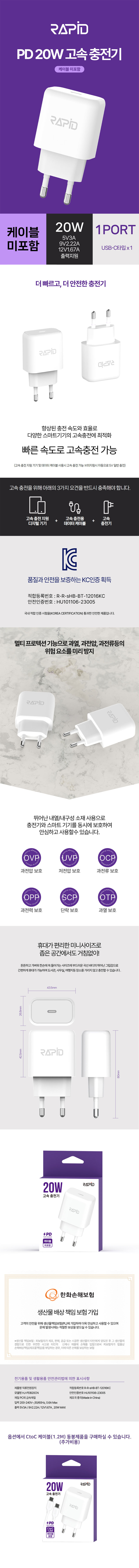 ¶óÇÇµå °¡Á¤¿ëÃæÀü±â PD20W 1Æ÷Æ®(C)