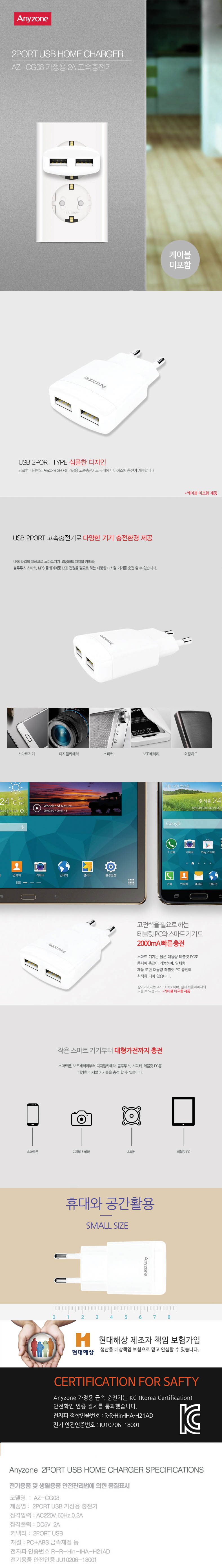 ¾Ö´ÏÁ¸ ANYZONE 10W 2Æ÷Æ® ÃæÀü±â AZ-CG08