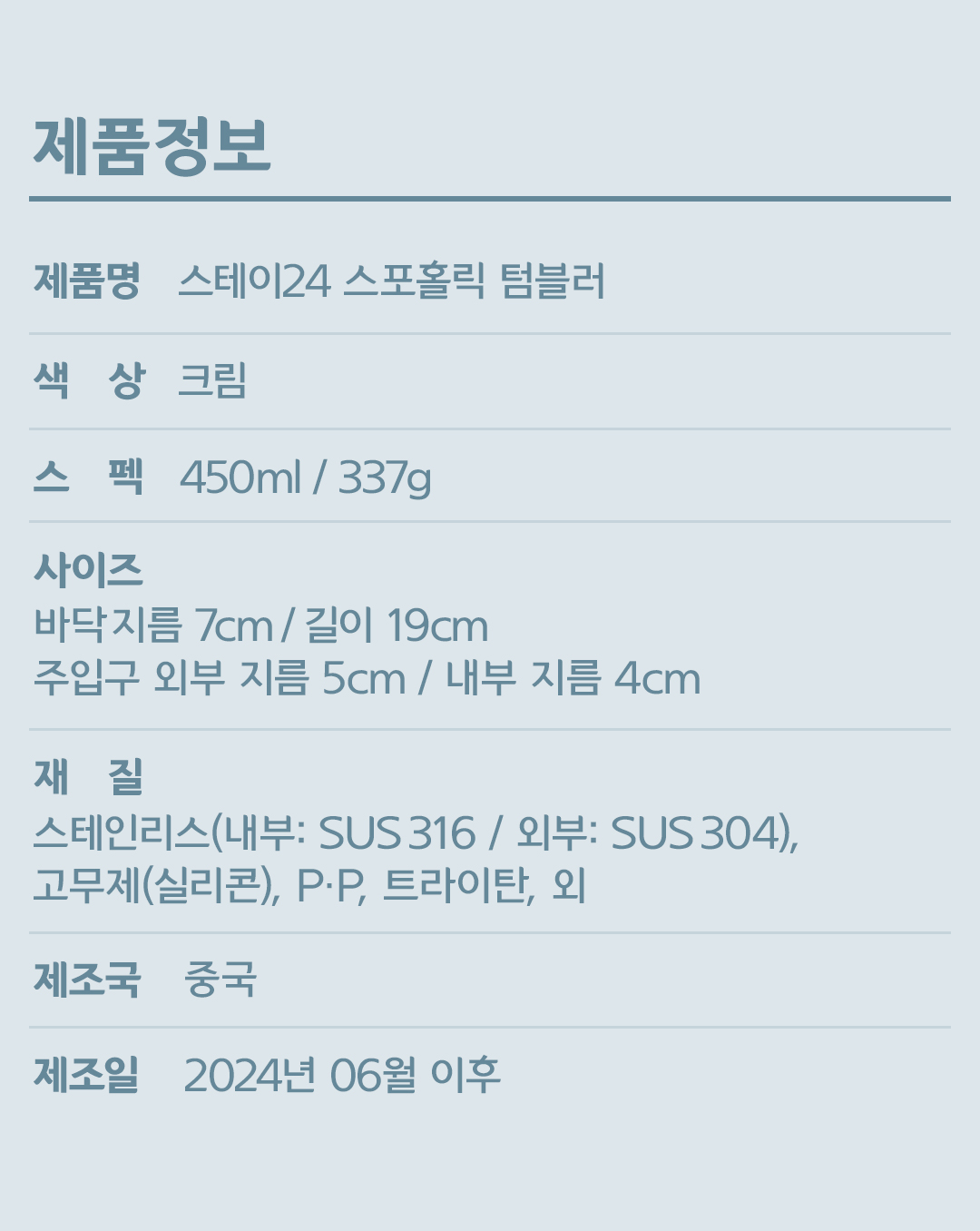 ½ºÅ×ÀÌ24 ½ºÆ÷Ȧ¸¯ ÅÒºí·¯ Å©¸² 450ml