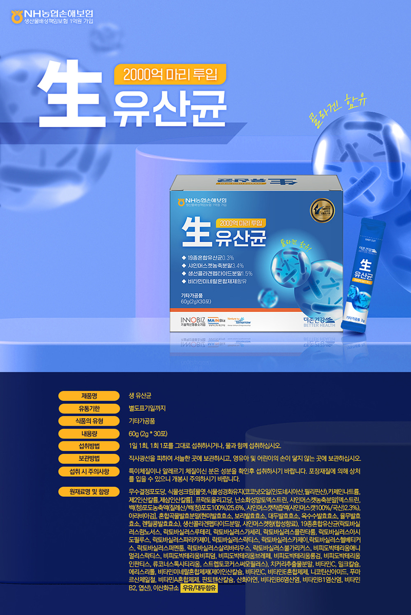 ±Ô°Ý/»çÀÌÁî »ýÀ¯»ê±Õ19Á¾È¥ÇÕ 2g*30Æ÷ »ö »ó »ó¼¼ Âü°í