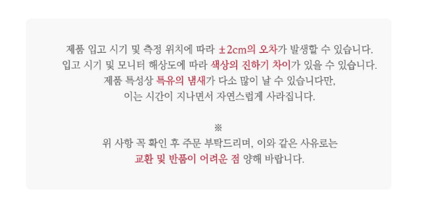 - ±³È¯/¹ÝǰÀº »óǰ¼ö·É ÈÄ 7ÀÏÀ̳» ¿äû ÇØÁÖ¼Å¾ß ÇÕ´Ï´Ù. (ÀÌÈÄ ¿äû½Ã, Á¦Ç°ÇÏÀÚ µî ±³È¯,¹Ýǰ ÁøÇàºÒ°¡ ÇÕ´Ï´Ù)
